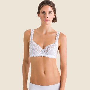 Eyelet Balconette Underwire Bikini Top With Ribbon Trim For Women